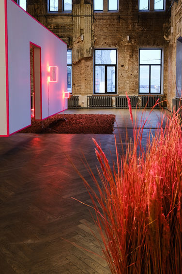 The large-scale installation in the main gallery hall represent the modern processing of the architecture and design of late modernism transformed from a dominant doctrine into the language of art everyday life.
